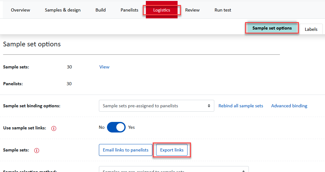 verify that you have the correct Sample set binding option enabled. The Sample set links feature is compatible with Sample sets pre-assigned to panelists .