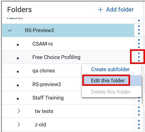 - At the end of the folder name, click the three vertical dots and select Edit this folder.