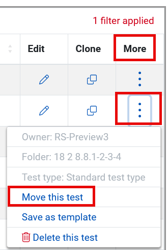 - In the More column for your test, click the three vertical dots and select Move this test.