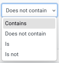 - Question name. Choose between the operator options outlined below and specify in the empty box a (not case sensitive) text that the criterion should compare against in question names: