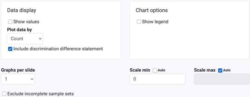 - Include discrimination difference statement. Deselected by default. Controls whether the discrimination difference statement is displayed in the slide title or not.