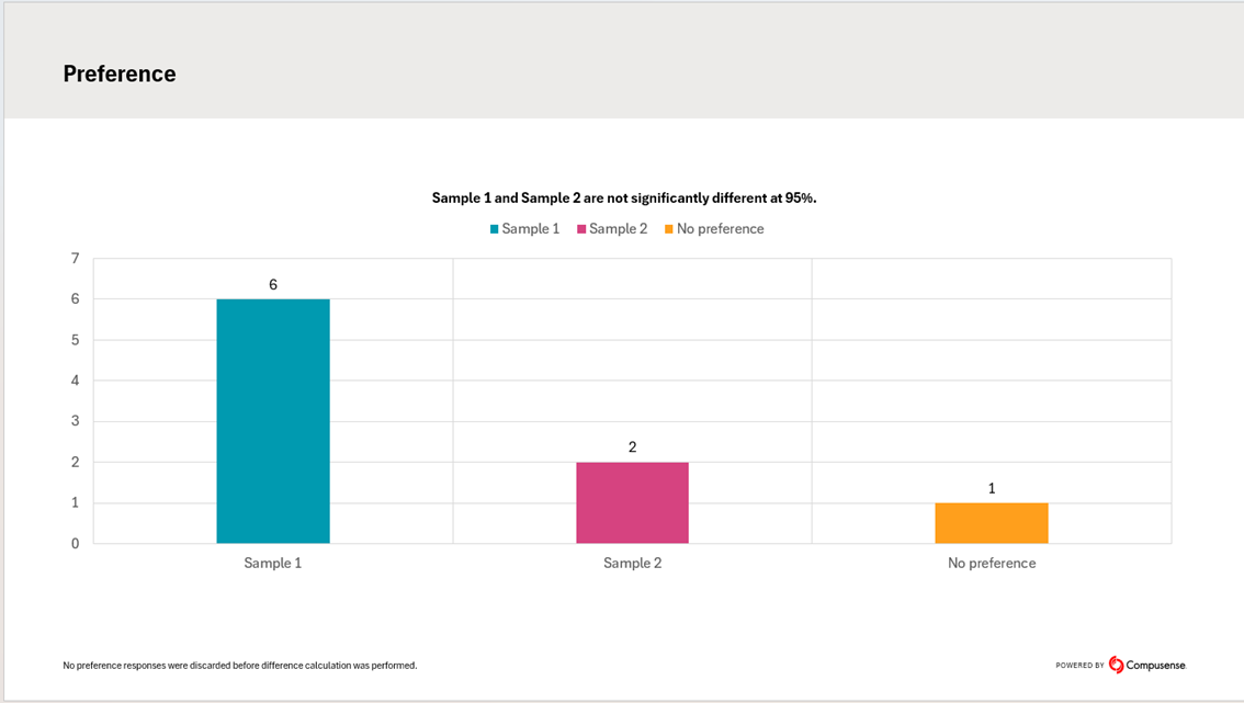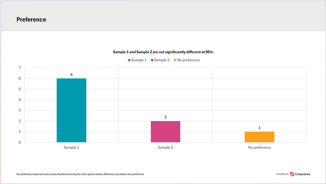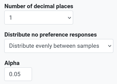 - Distribute evenly between samples. Default selection. The "No preference" responses, even though displayed in the graph are evenly distributed among the other options before difference calculation is performed.
