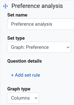 - Question details. By default, all Ranking question data will be graphed. Click Add set rule