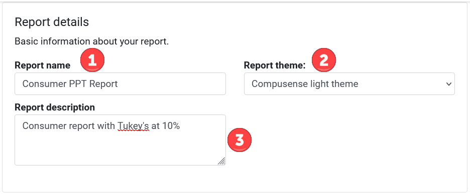 - Report file name. When you first download a recently generated report, the file name will match what is seen in the Recent reports. In our example: "Chocolate Consumer Study (6039).pptx". If you download the same report multiple times, each time the file name will get a sequential number in round brackets appended. For example: "Chocolate Consumer Study (6039) (1).pptx", "Chocolate Consumer Study (6039)(2).pptx", etc.