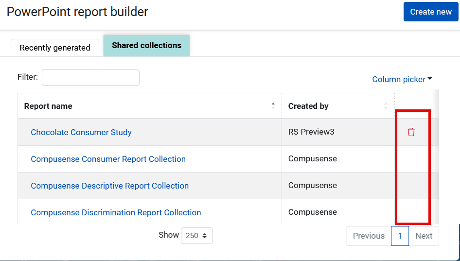 delete shared PowerPoint report collections that are no longer needed. Shared collections distributed by Compusense cannot be deleted. Shared collections saved for multiple groups can be deleted only if you have access to all the groups the shared collection is saved to.